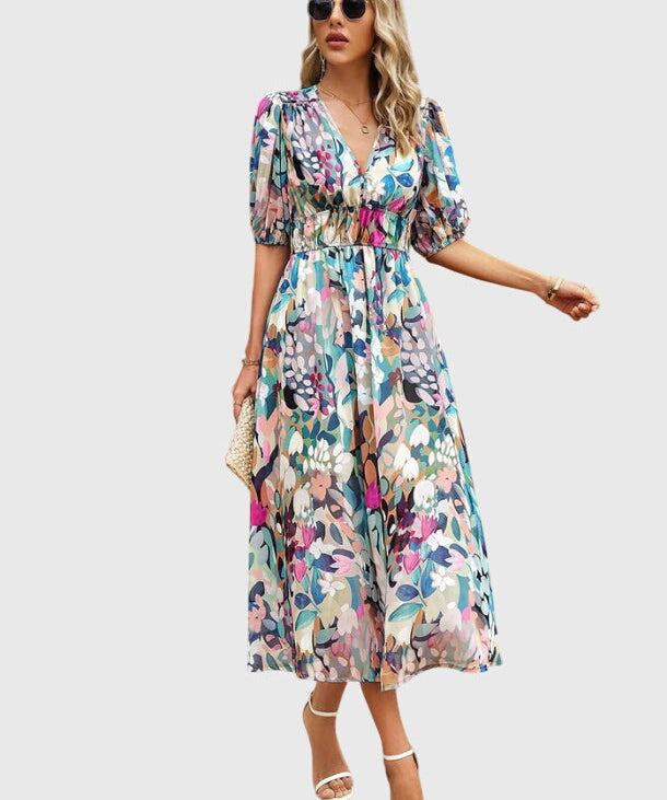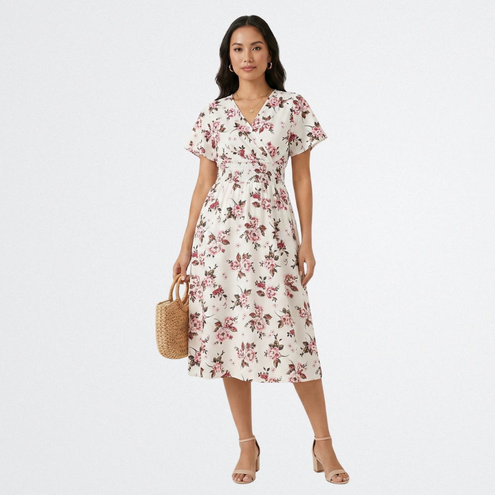 Yvonna - Elegáns virágmintás midi ruha