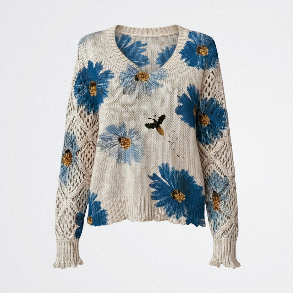 Solara - Vadvirágos kötött pulóver