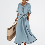Ez a ruha szépen és magabiztosan érezteti magát veled – mindez erőfeszítés nélkül. Tökéletes nyári estékre, tengerparti nyaralásokra vagy egy laza vacsorára barátokkal, ahol végre újra önmagad lehetsz.