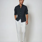 Fedezze fel a Grand Arbres Tengerész Kék Len Ing kifinomult stílusát. Ez az elegáns ing ötvözi a len lélegző tulajdonságait a modern, sokoldalú színnel, amely ideális férfiak számára, akik kényelmes és stílusos öltözéket keresnek. Tökéletes bármilyen informális és félformális alkalomra.