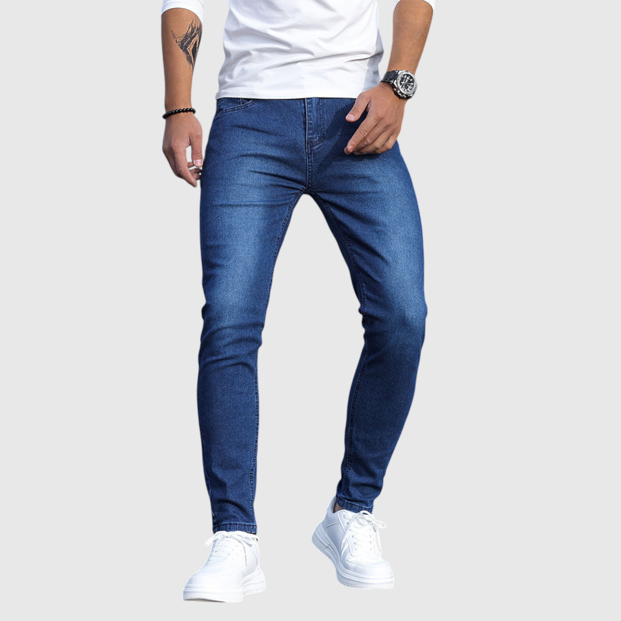 A Casual Denim farmer férfiak számára készült, akik napi használatra vágynak, kompromisszumok nélkül a stílusban. Minőségi farmerből készült, megbízható illeszkedést kínál, ideális egyensúlyban a struktúra és a kényelem között - tökéletes napi viselethez, hétvégi programokhoz vagy informális kirándulásokhoz.